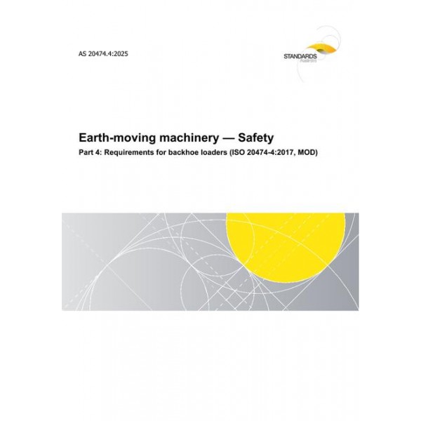 AS 20474.4:2025 adopts and modifies ISO 20474 4:2017, which specifies the safety requirements specific to wheeled and crawler backhoe loaders as defined in AS ISO 6165:2023. It is intended to be used in conjunction with AS 20474.1:2025, which specifies general safety requirements common to two or more earth-moving machine families