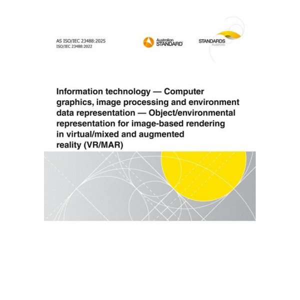 AS ISO/IEC 23488:2025 Information technology - Computer graphics, image processing and environment data representation - Object/environmental representation for image-based rendering in virtual/mixed and augmented reality (VR/MAR)