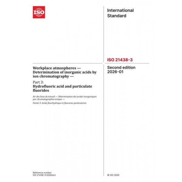 ISO 21438-3:2026 Workplace atmospheres - Determination of inorganic acids by ion chromatography - Part 3: Hydrofluoric acid and particulate fluorides