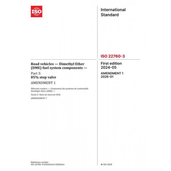 ISO 22760-3:2024/Amd1:2026 - Amendment 1: Road vehicles - Dimethyl Ether (DME) fuel system components - Part 3: 85% stop valve - Amendment 1
