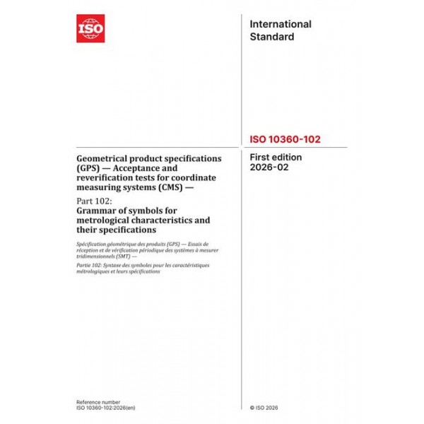 ISO 10360-102:2026 Geometrical product specifications (GPS) - Acceptance and reverification tests for coordinate measuring systems (CMS) - Part 102: Grammar of symbols for metrological characteristics and their specifications